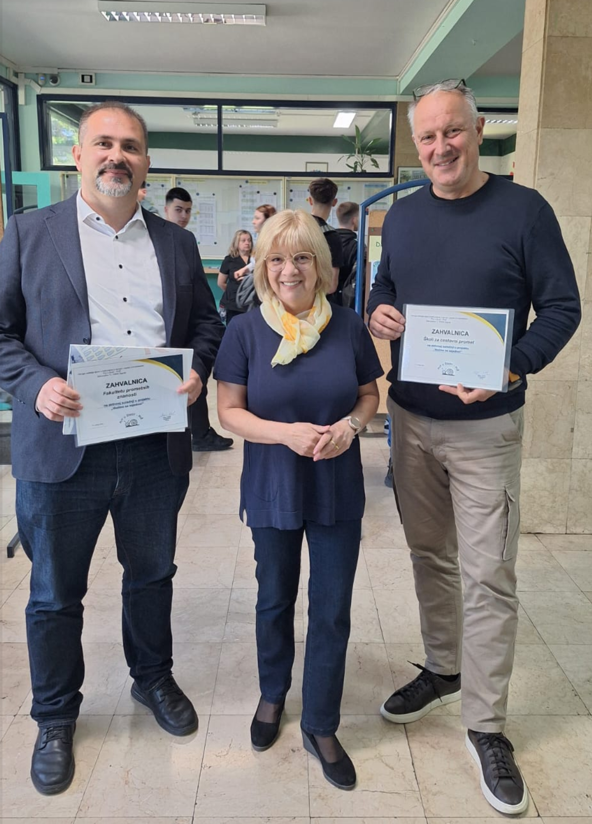 Projekt „Vozimo se zajedno!“ 🐌🚋🚌🦽🦯 uspješno je priveden kraju. Završno druženje održano je u našoj školi 🏢 gdje su uručene zahvalnice i potvrde 📜 profesoricama i učenicima. Zahvaljujemo svima na suradnji, podršci i sudjelovanju. Projekt je bio iznimno lijepo i edukativno iskustvo kroz koje su sudionici stekli nova znanja, razvili razumijevanje i upoznali se sa izazovima s kojima se susreću osobe s invaliditetom u prometu i svakodnevnom životu. Stečeno znanje nastavit će se prenositi dalje, uz poticanje na aktivno pomaganje osobama s invaliditetom te rad na poboljšanju njihove kvalitete života i pristupačnosti u društvu i prometu.